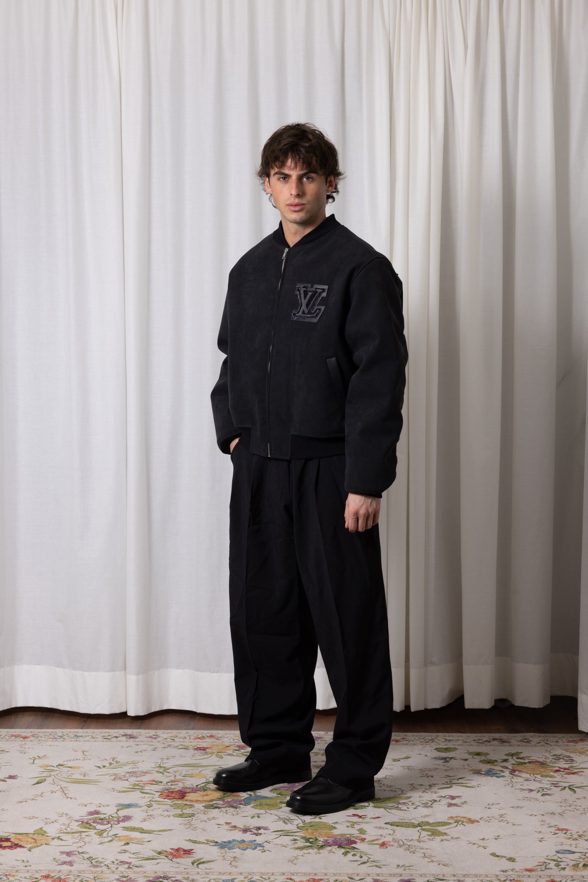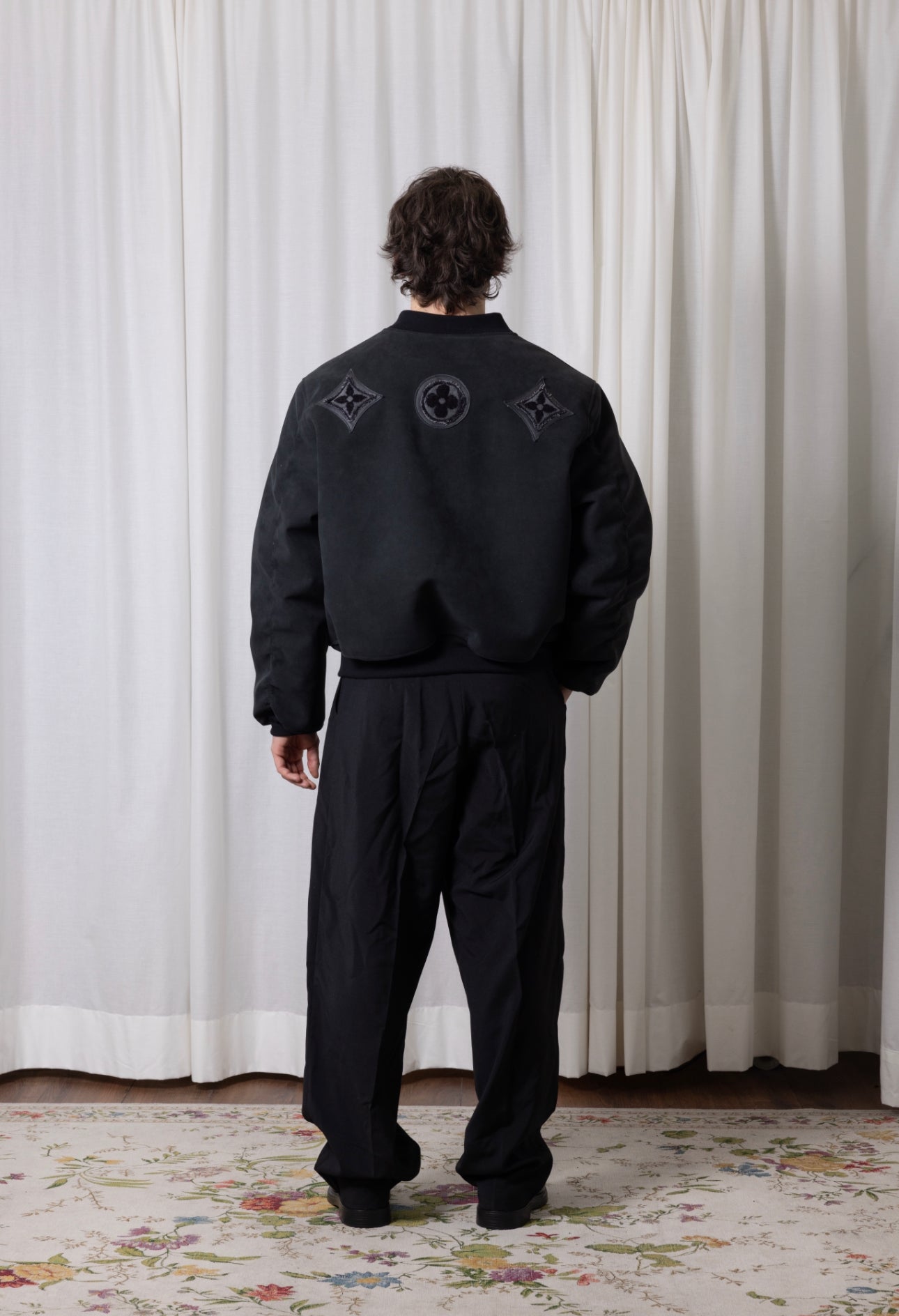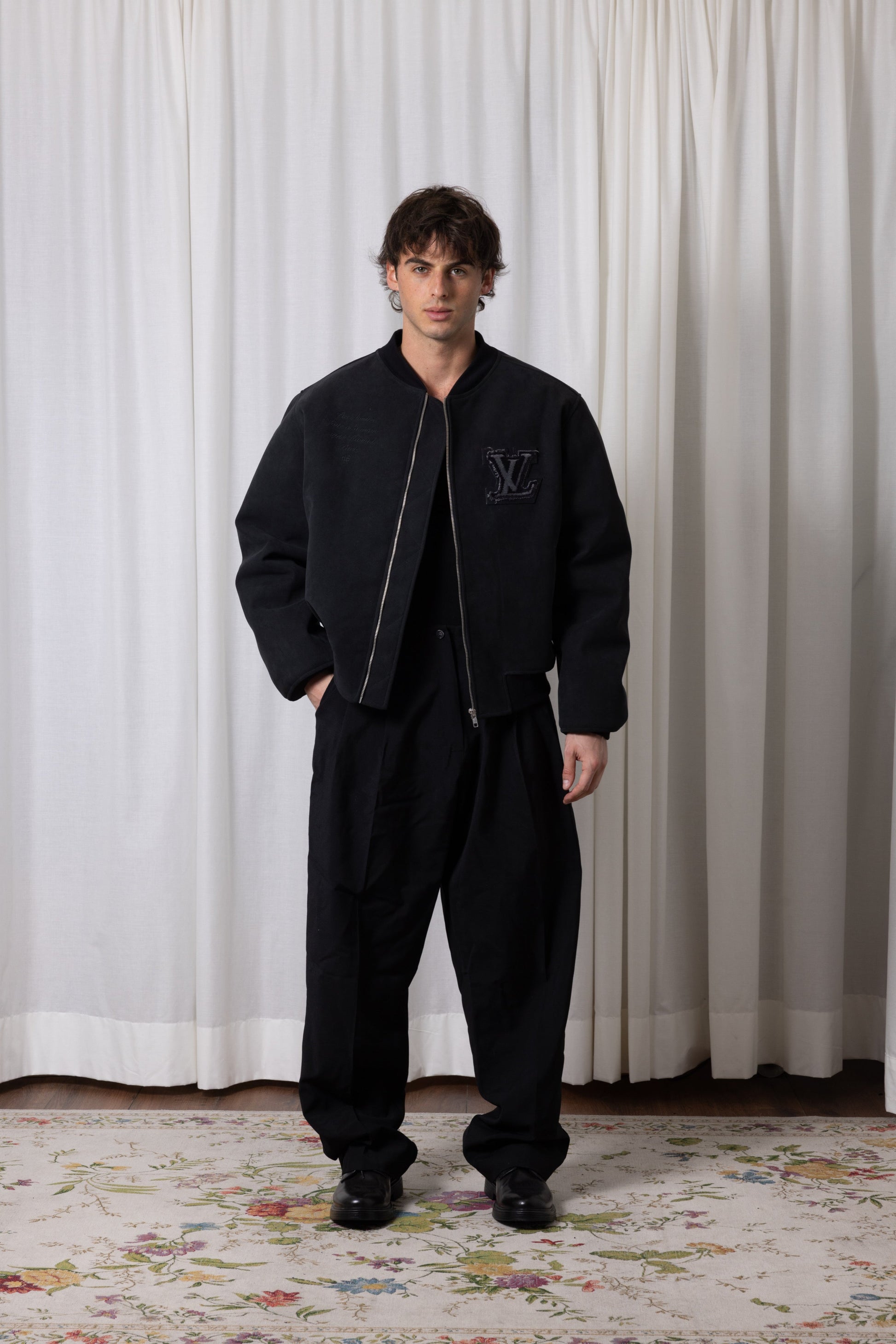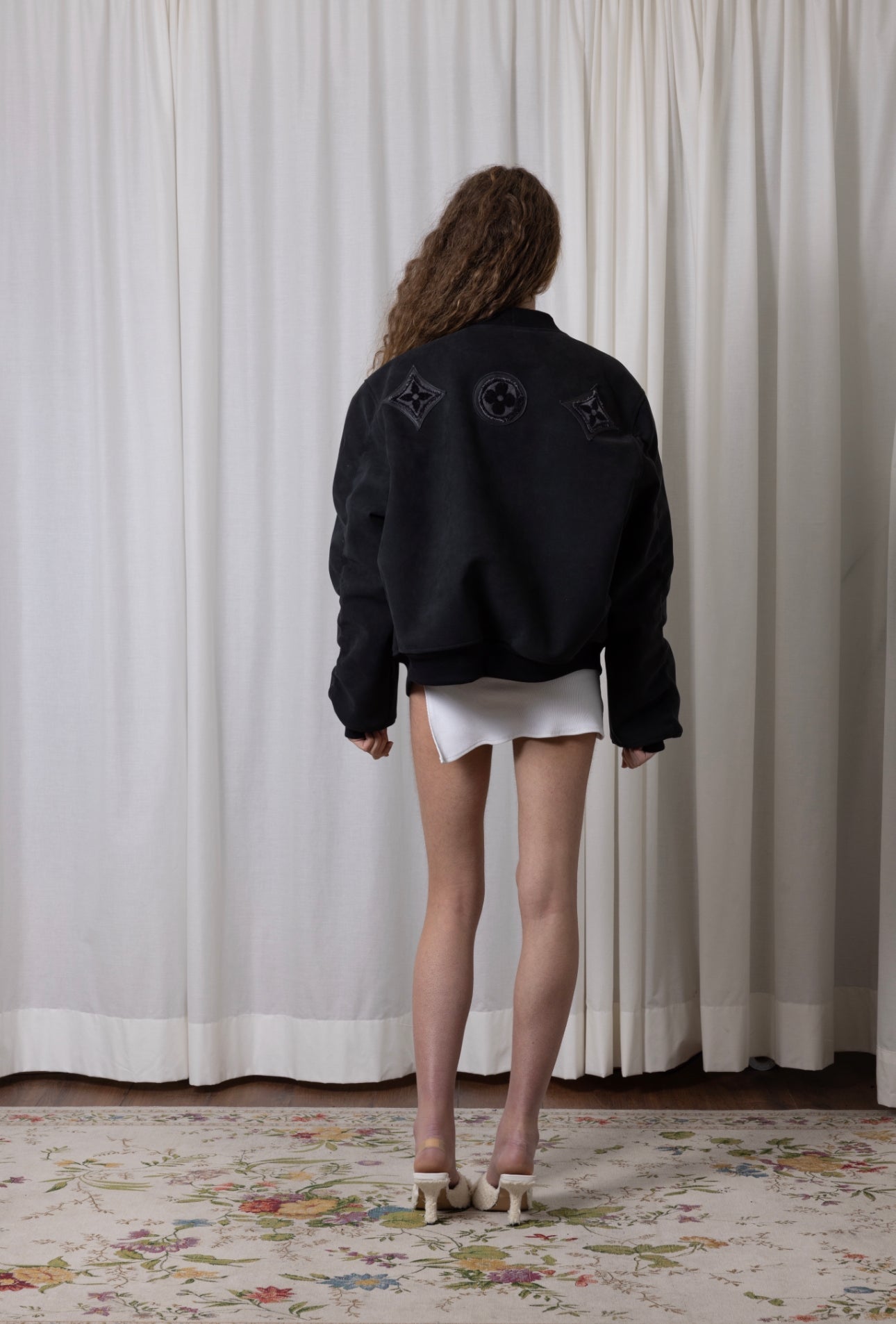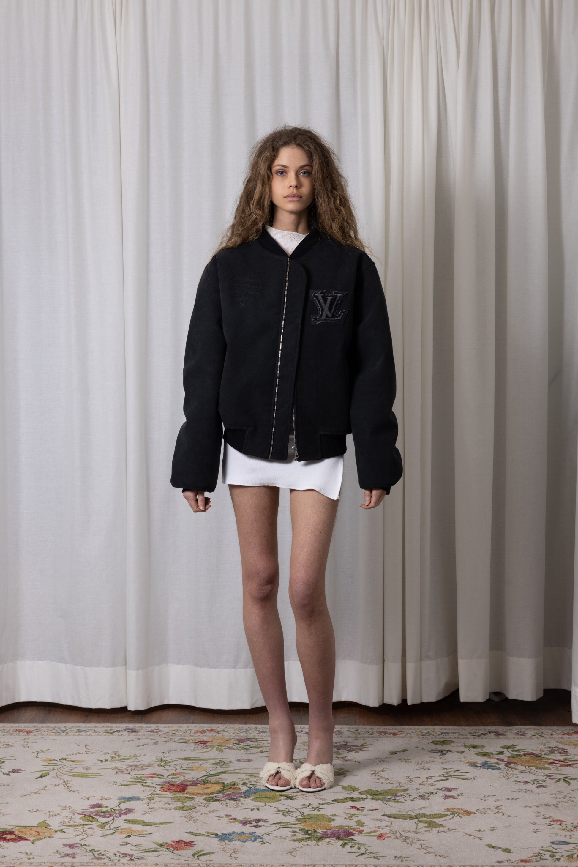 Bomber oversize avec un empiècement serviette upcyclé et cuir, poches devant, broderie devant