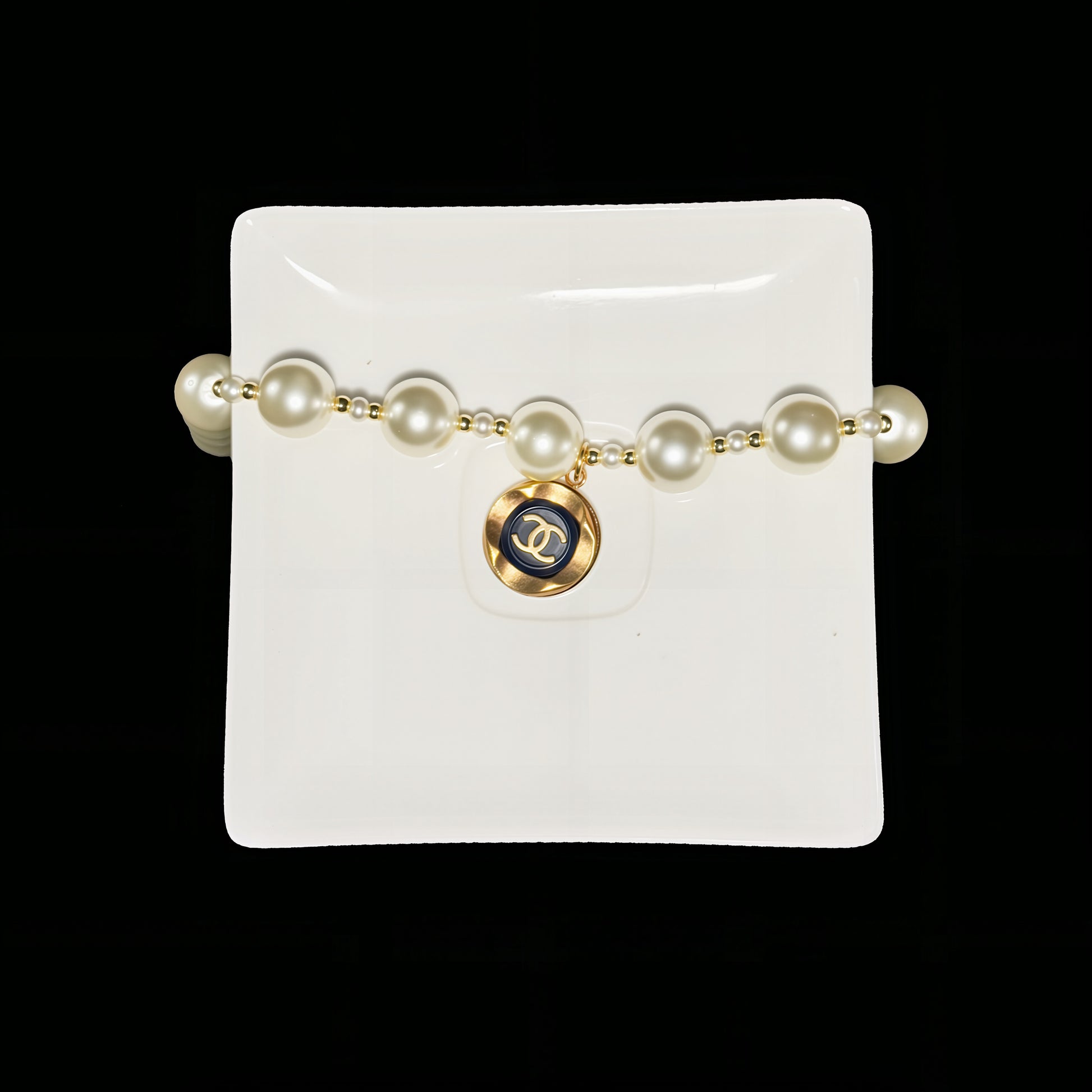 - Collier upcyclé à bouton d'environ 2cm, monté sur une chaîne réglable de 40 à 45 cm.