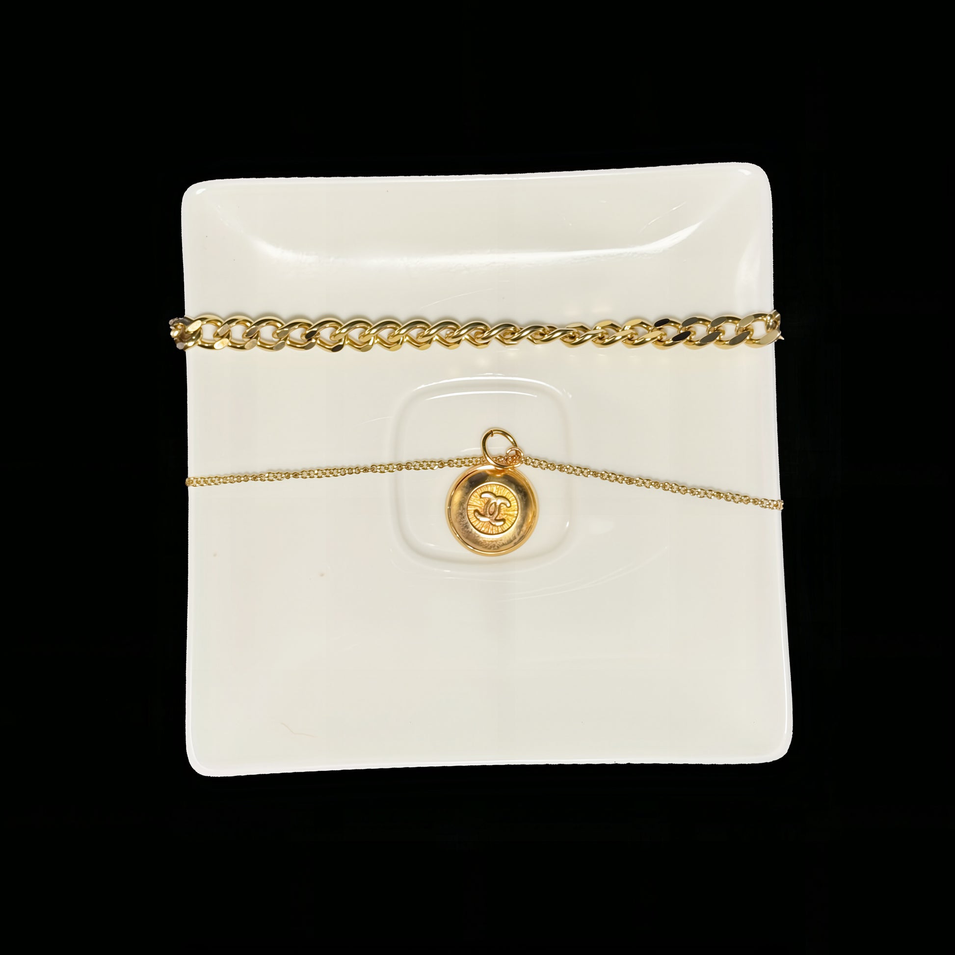 - Collier upcyclé à bouton d'environ 2cm, monté sur une chaîne réglable de 40 à 45 cm.