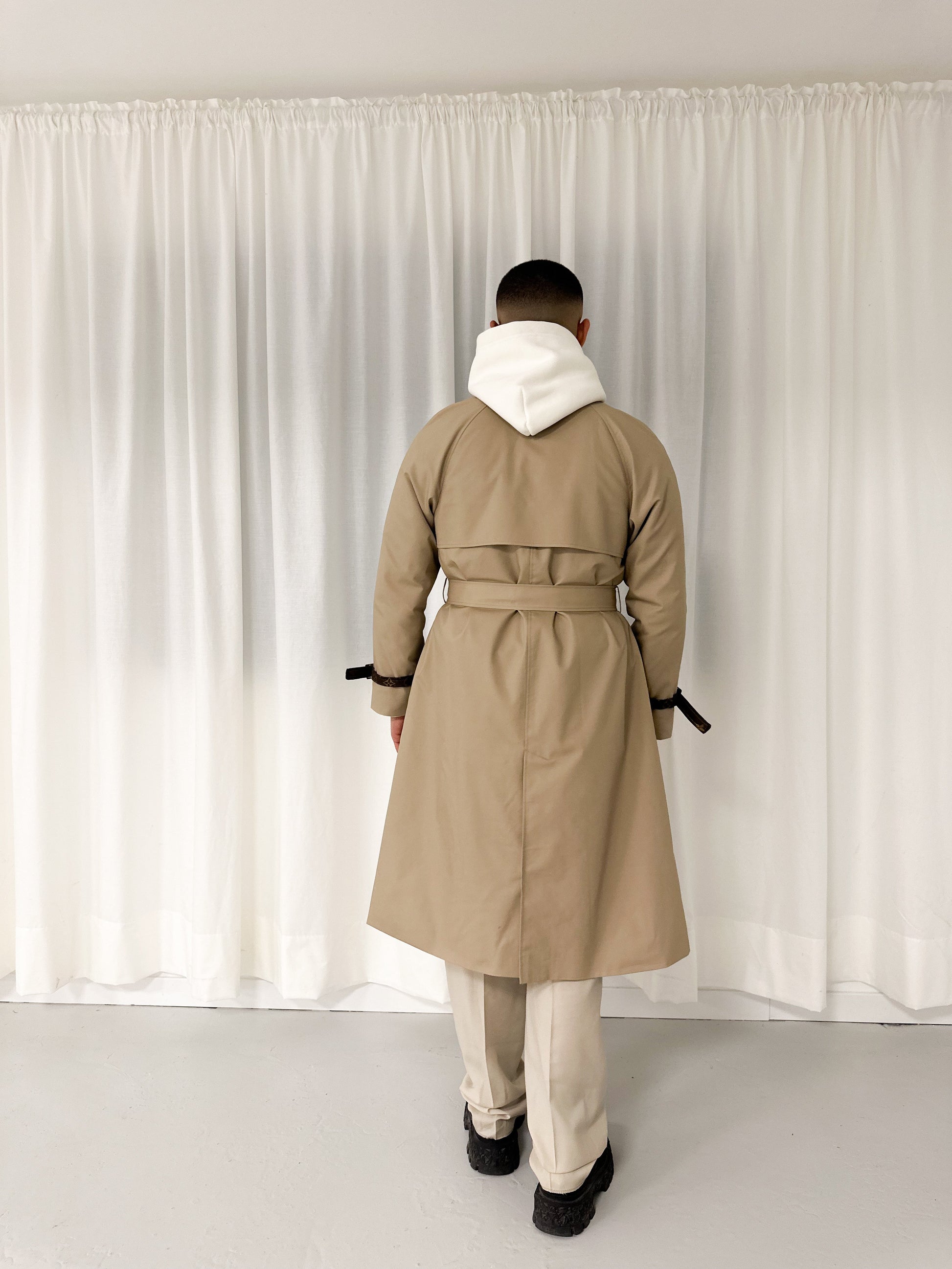 Chaque trench est fabriqué à la commande, afin d’éviter une surproduction afin de garder une démarche écologique tout au long du processus.