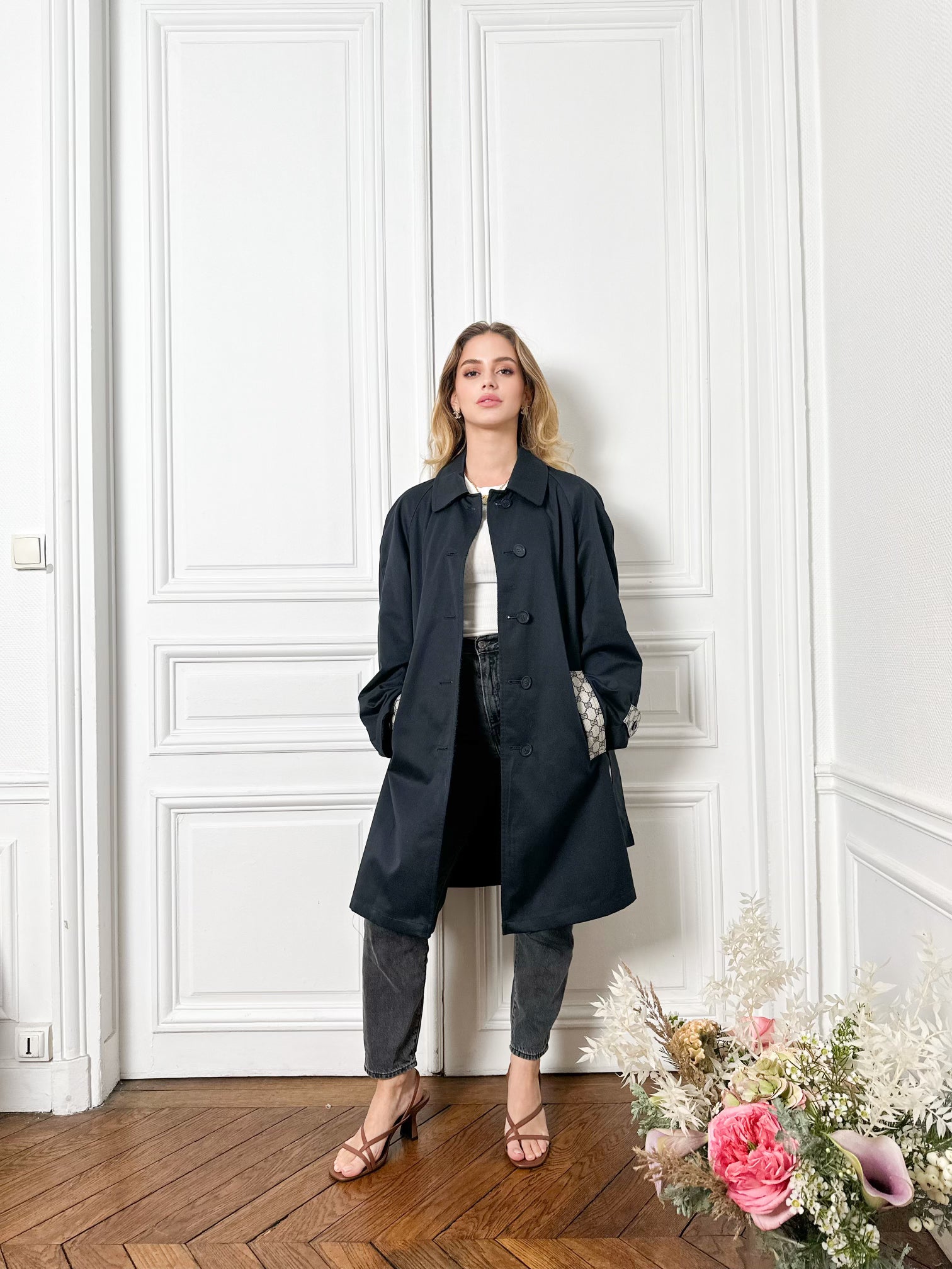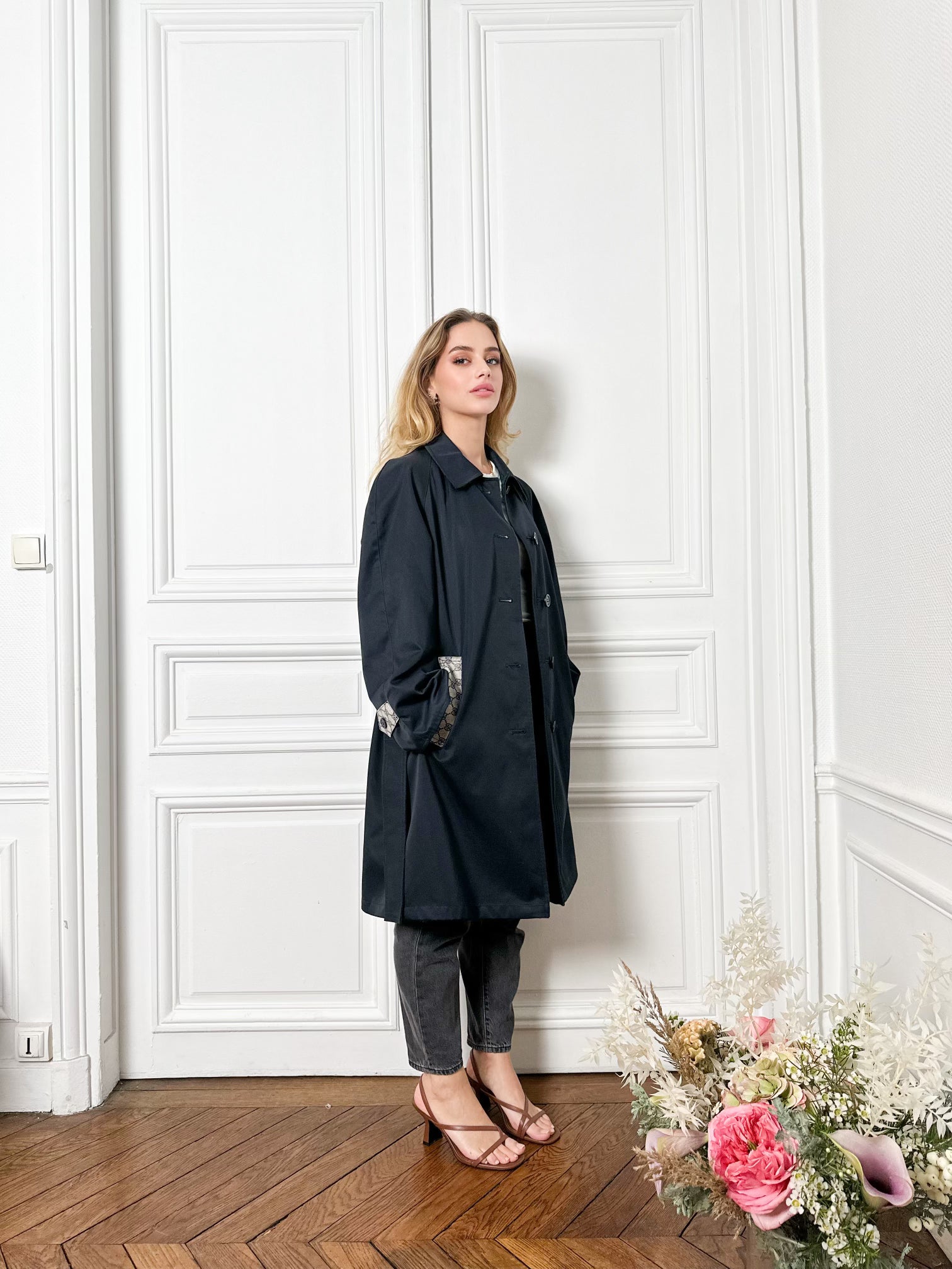 Trench upcyclé avec empiècement de toile d'une valise ou de châle