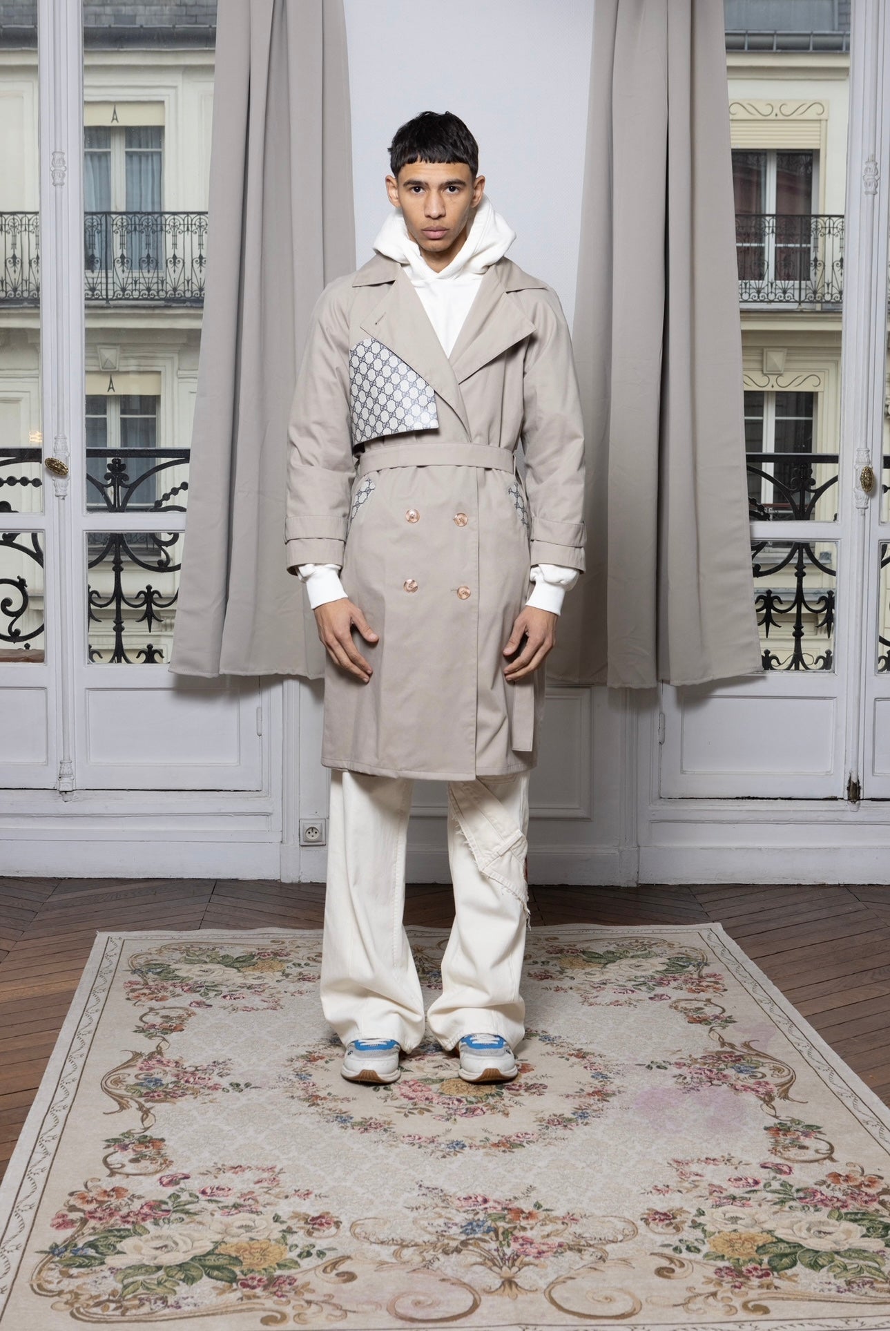 Trench upcyclé avec empiècement de toile d'une valise ou de châle