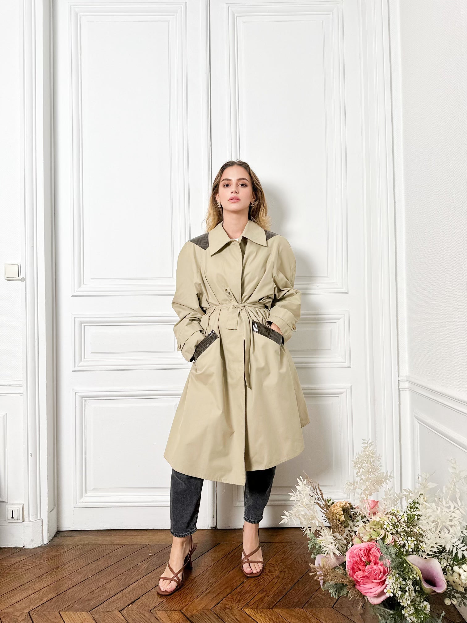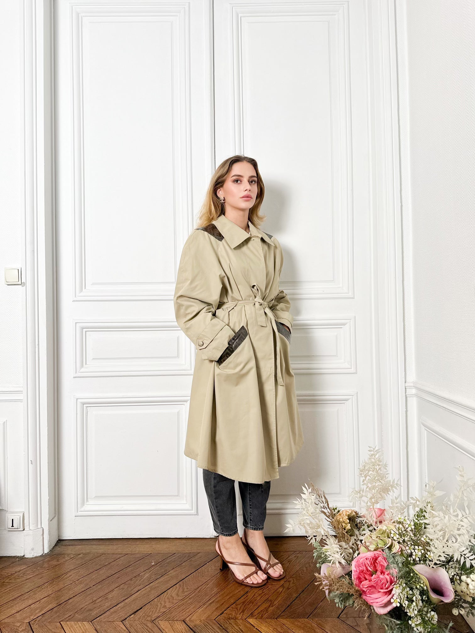 Trench upcyclé avec empiècement de toile d'une valise ou de châle