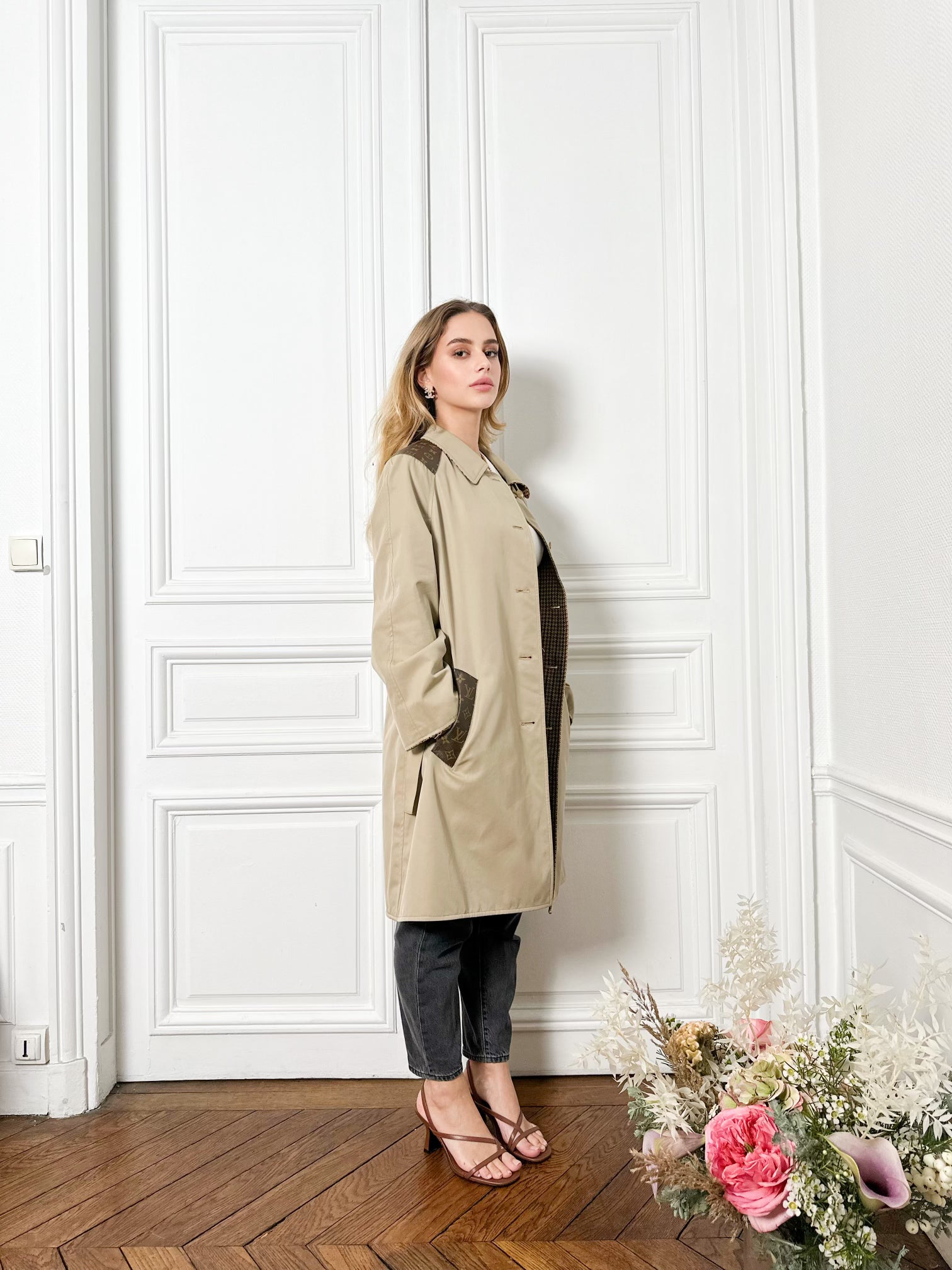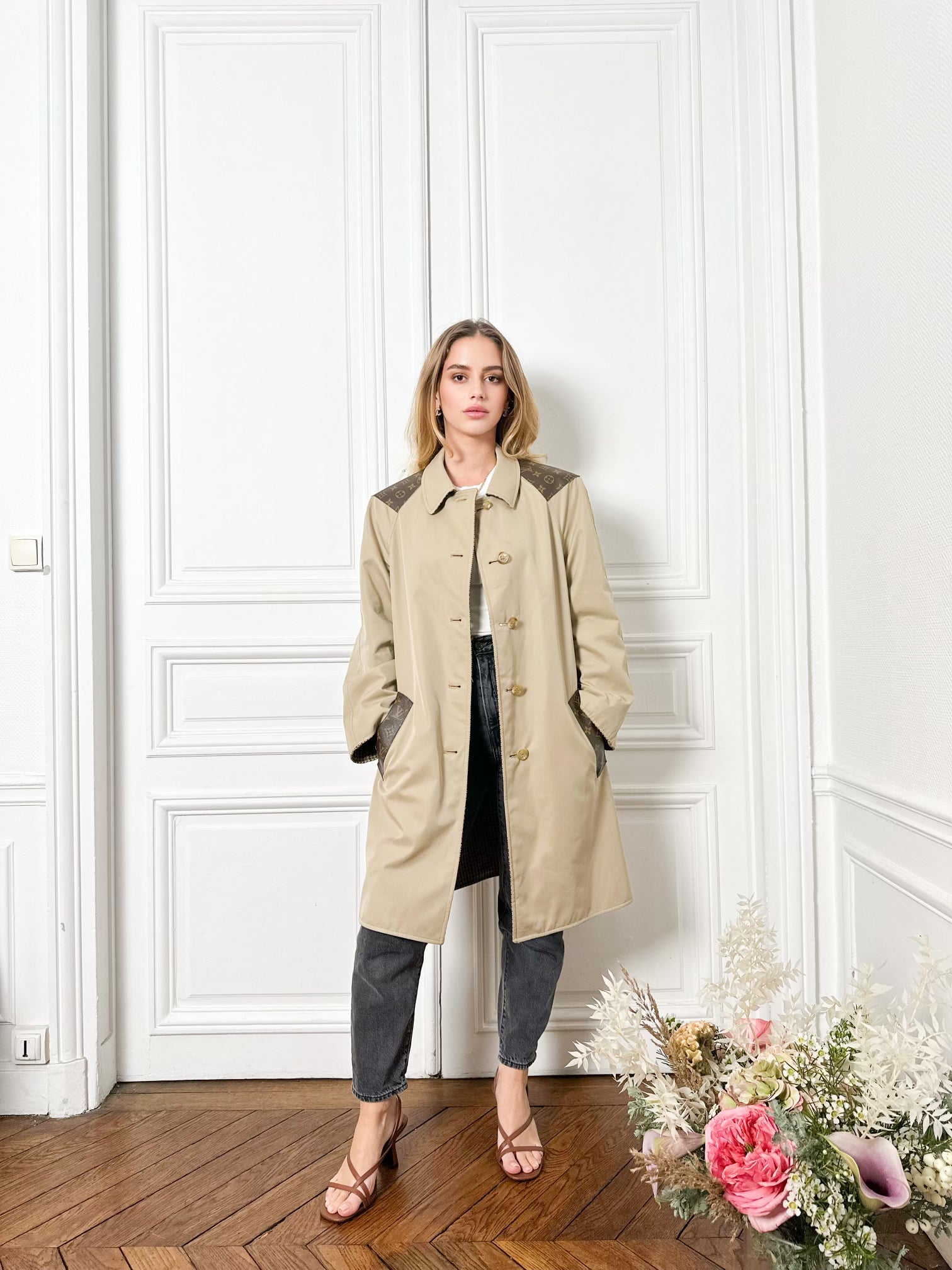 Trench upcyclé avec empiècement de toile d'une valise ou de châle