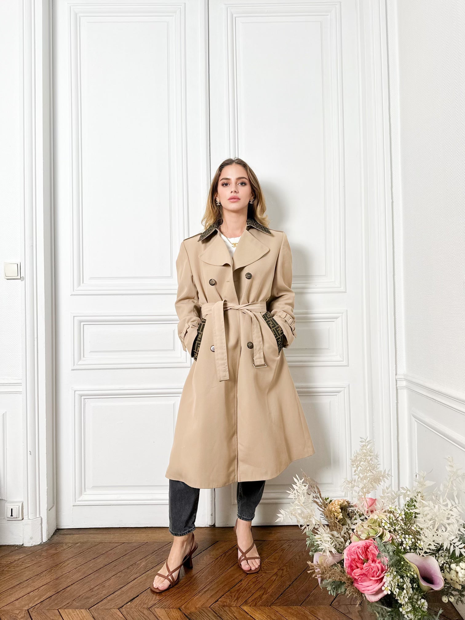 Trench upcyclé avec empiècement de toile d'une valise ou de châle