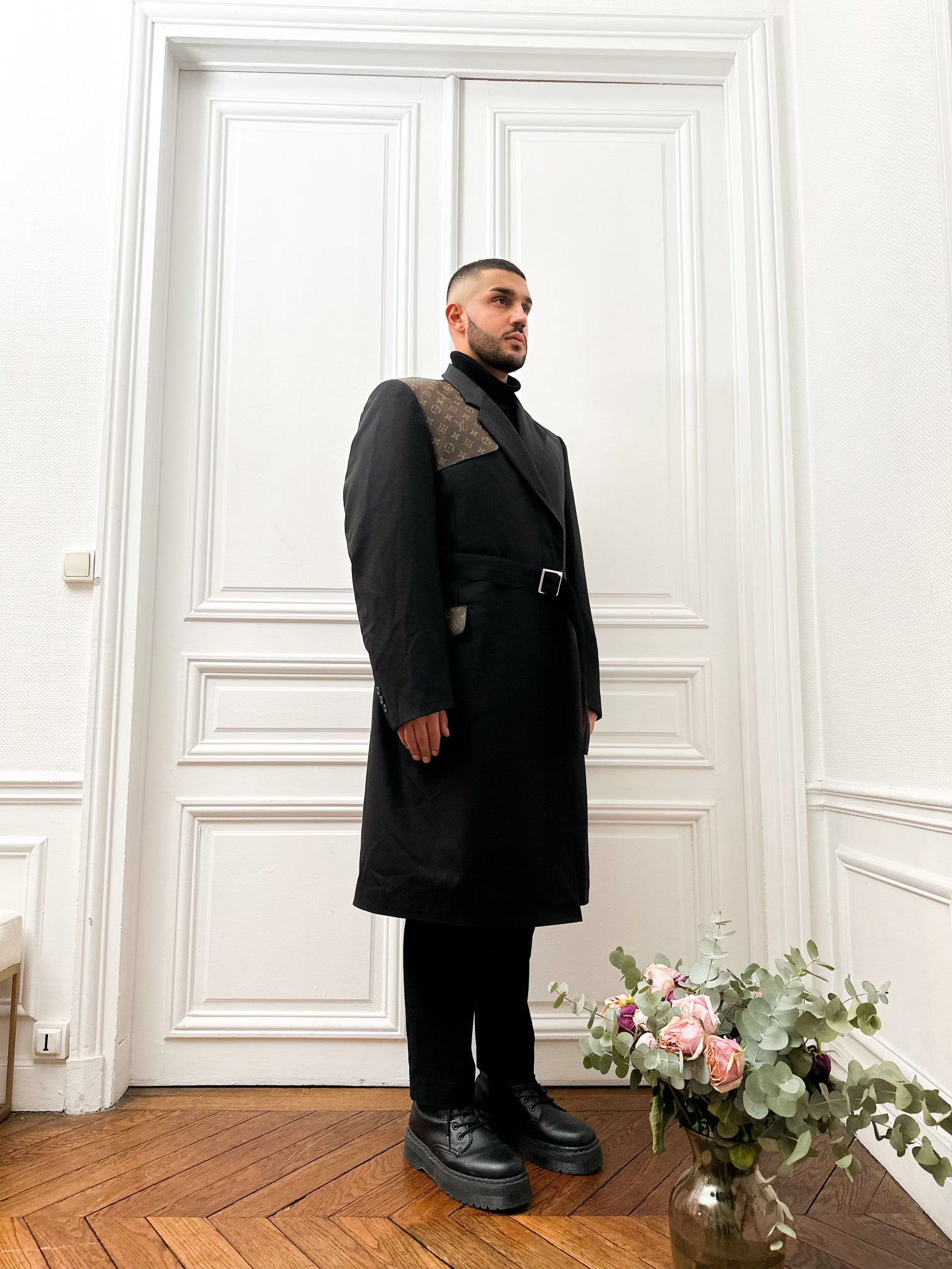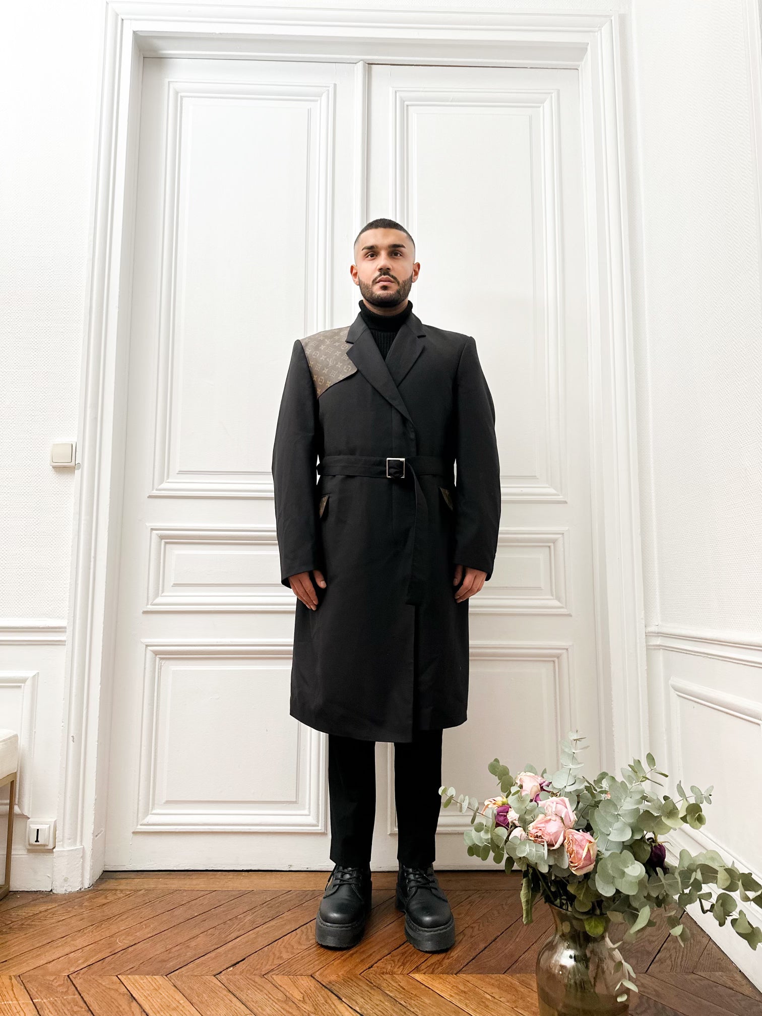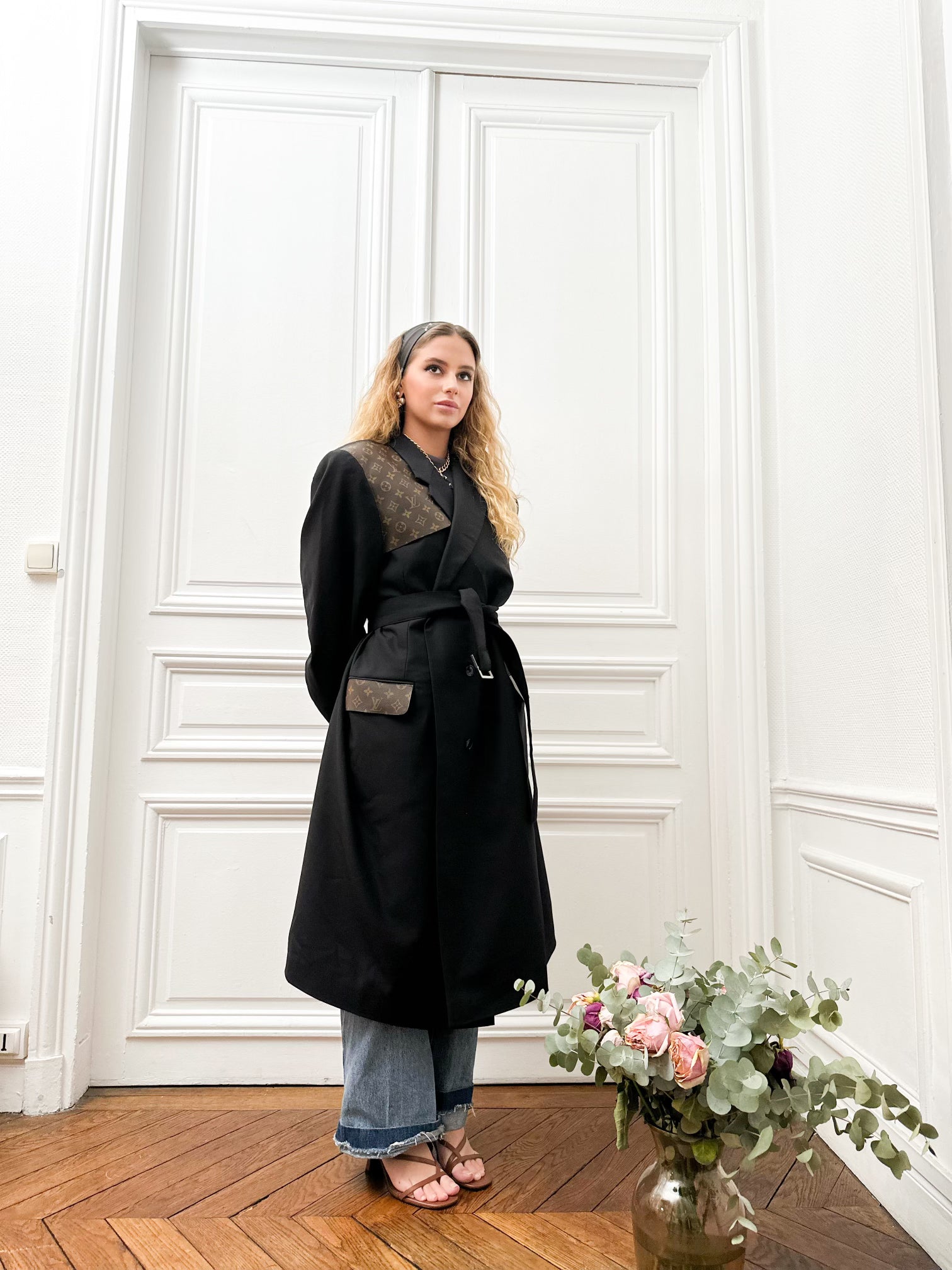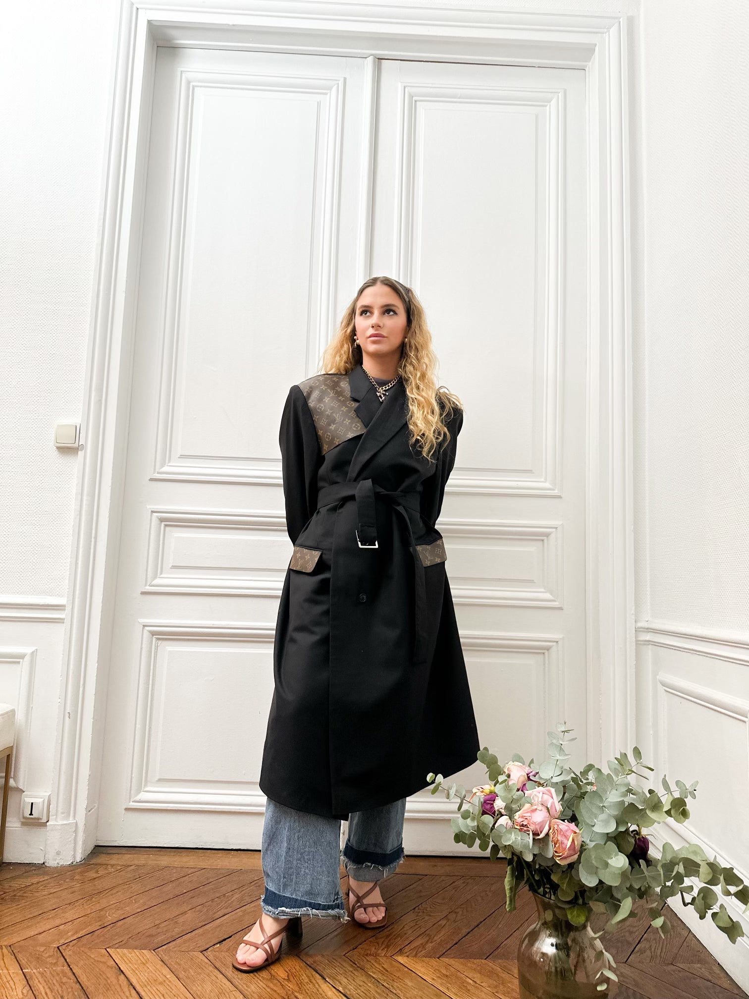 Trench upcyclé avec empiècement de toile d'une valise ou de châle