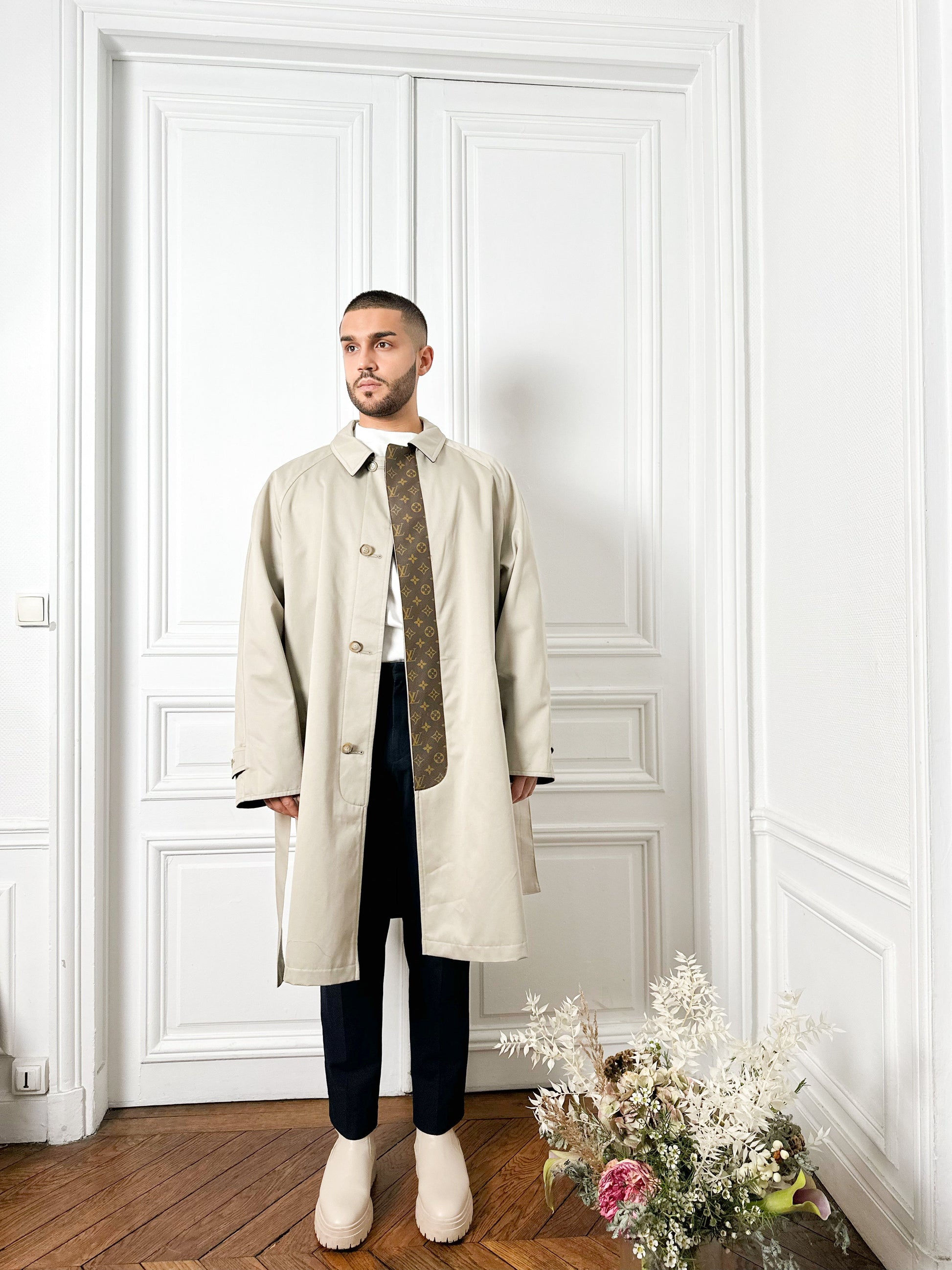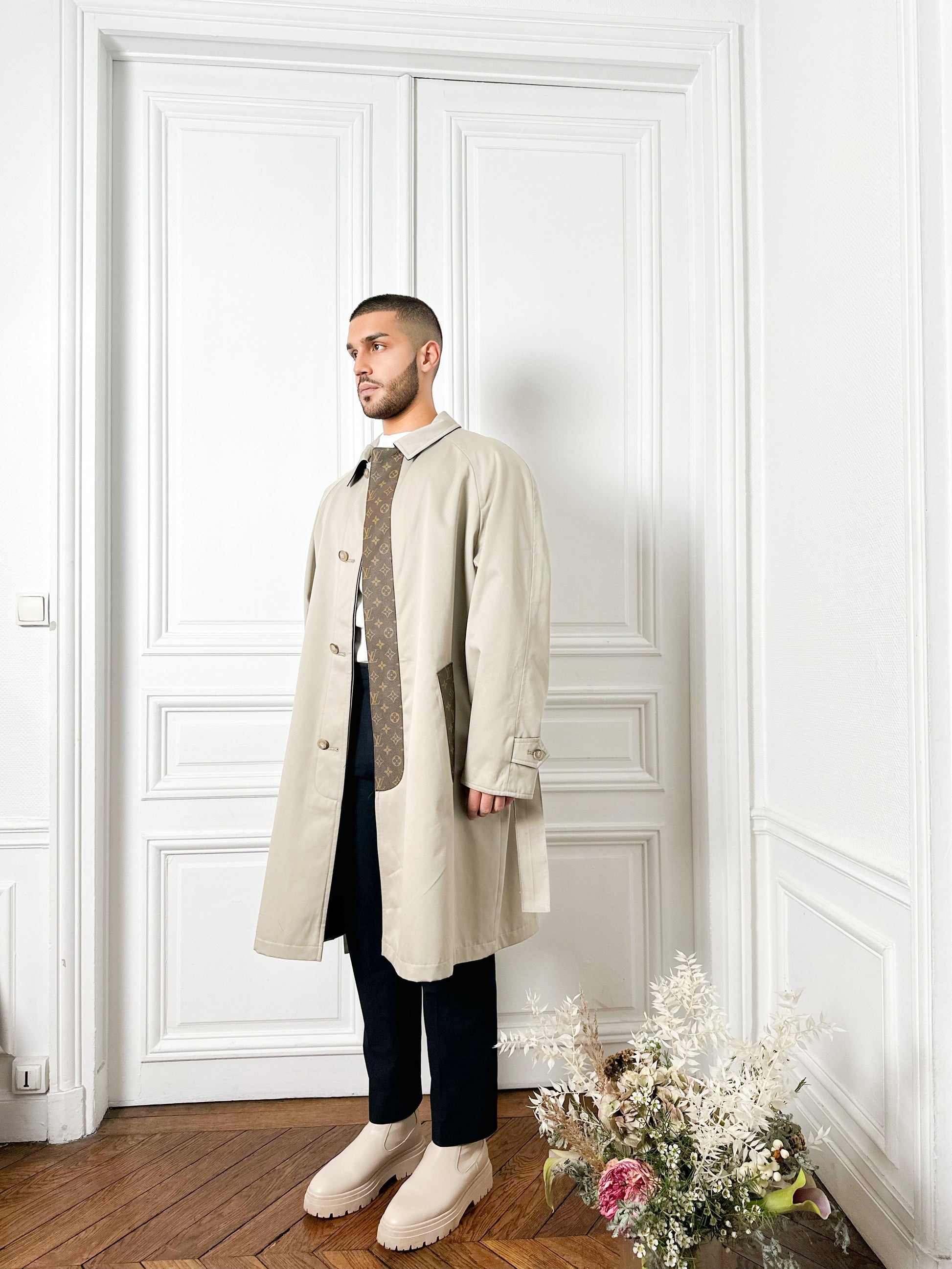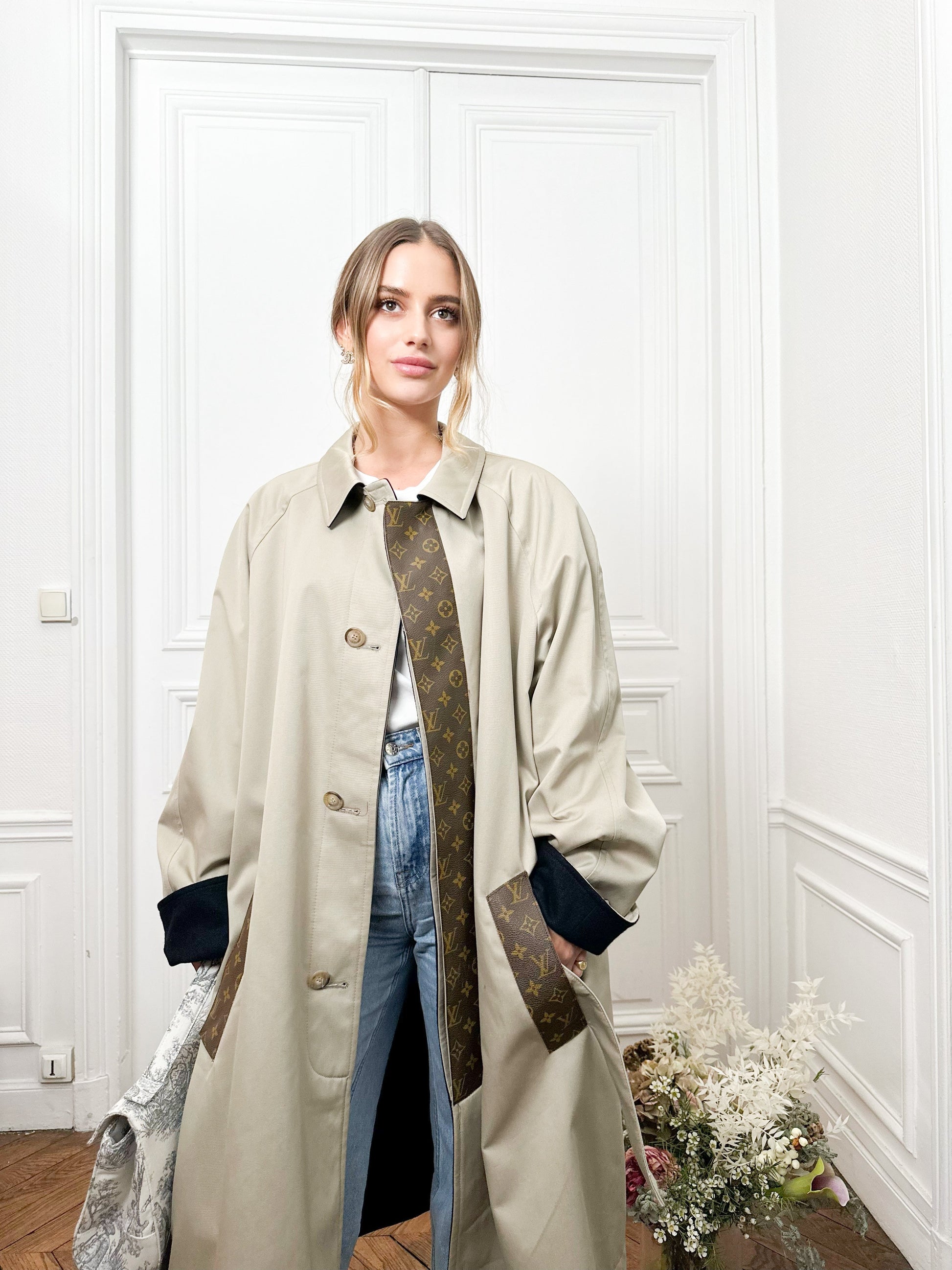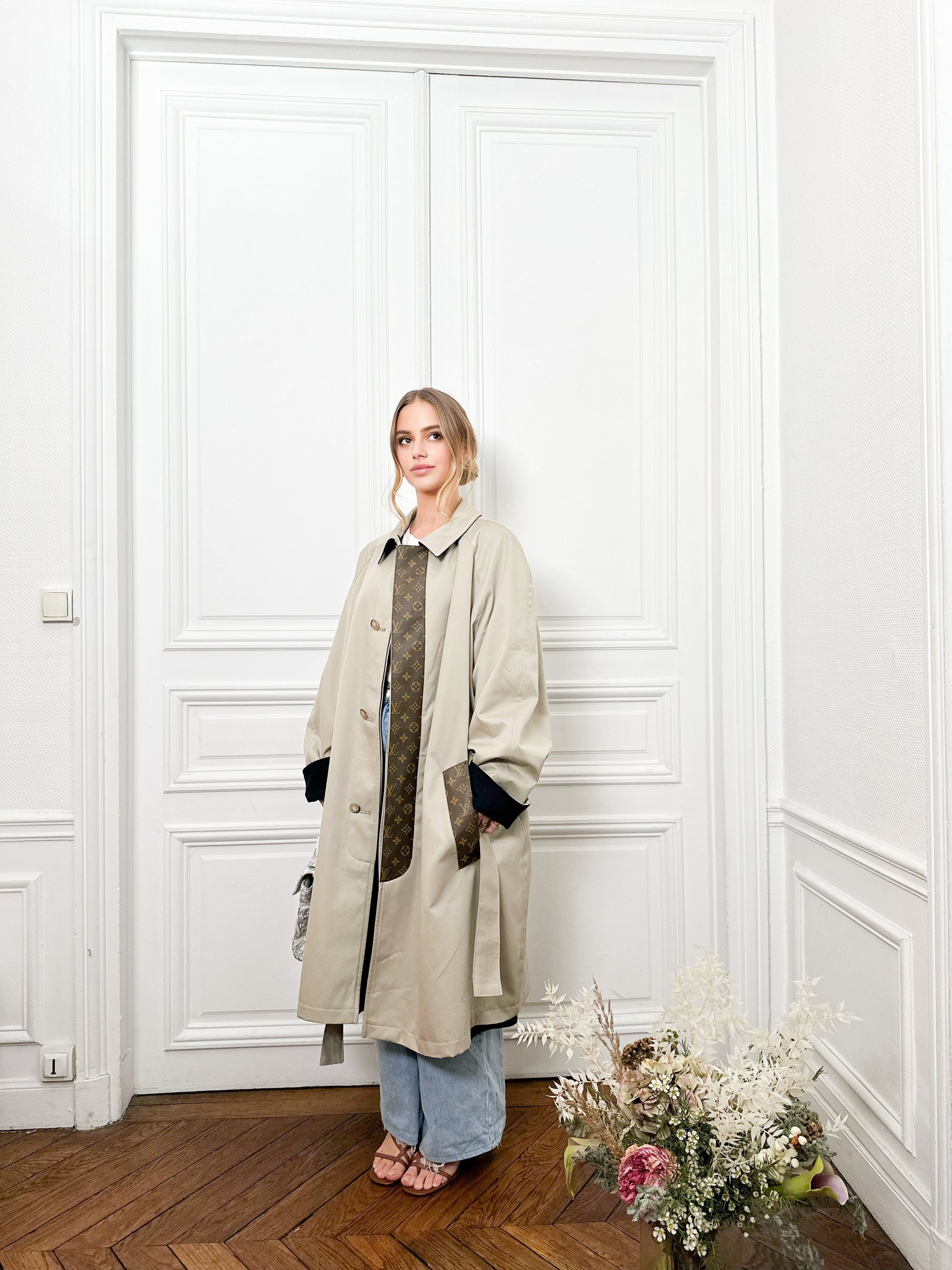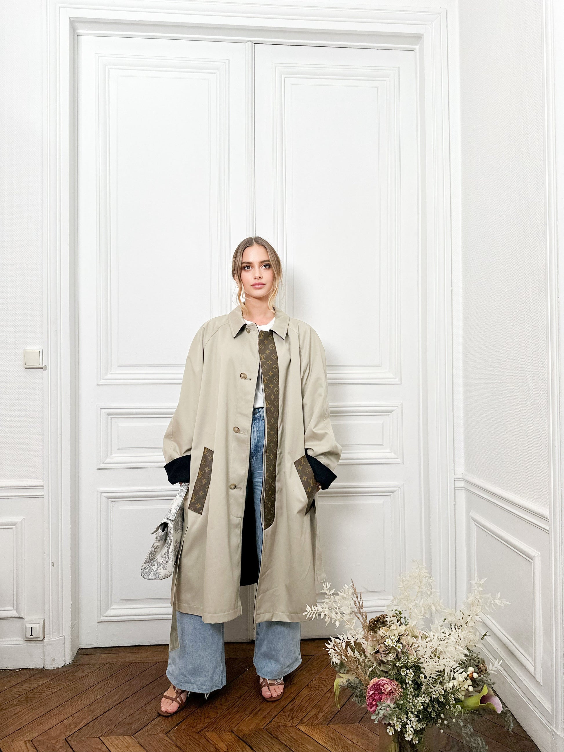 Trench upcyclé avec empiècement de toile d'une valise ou de châle
