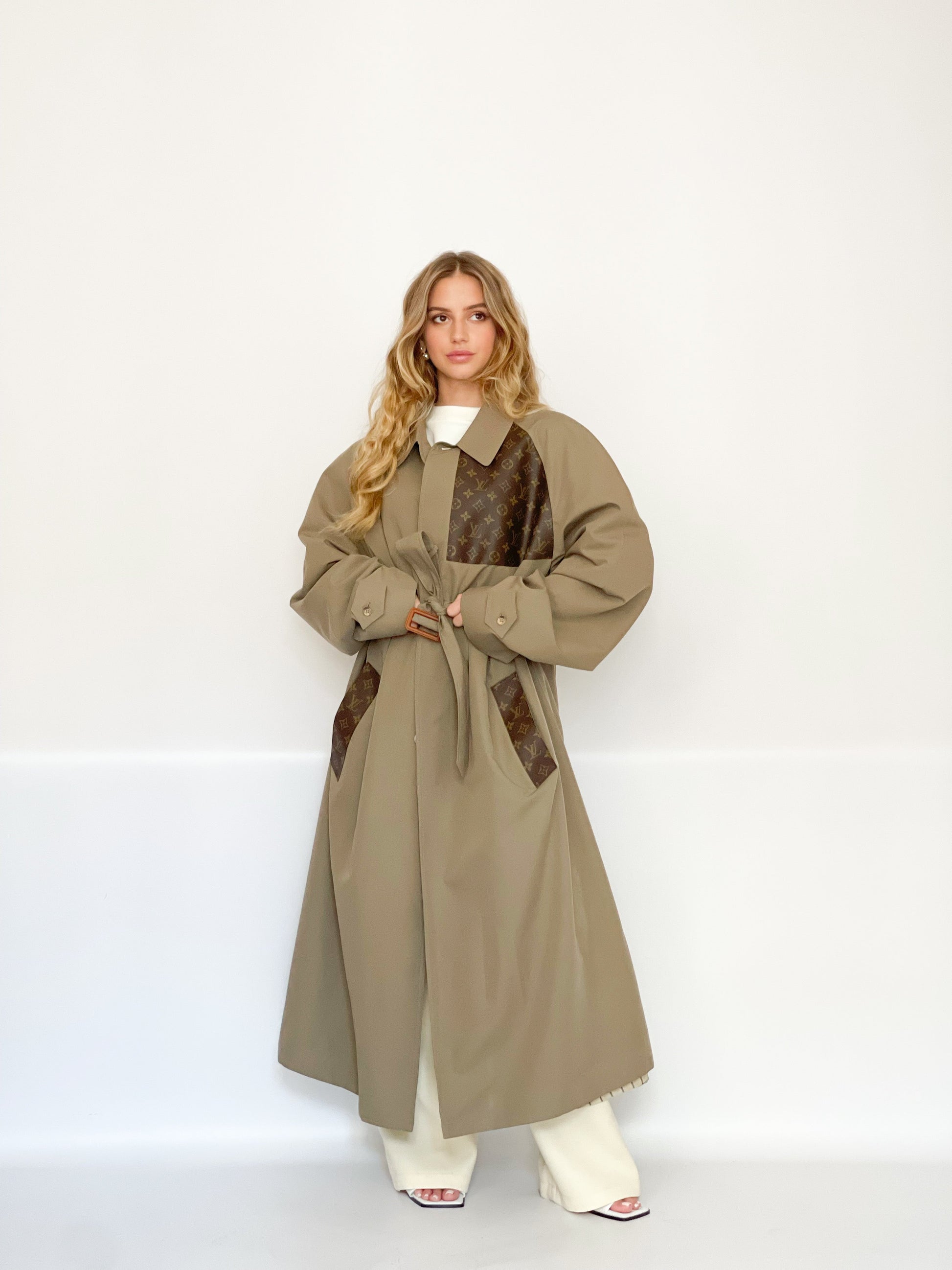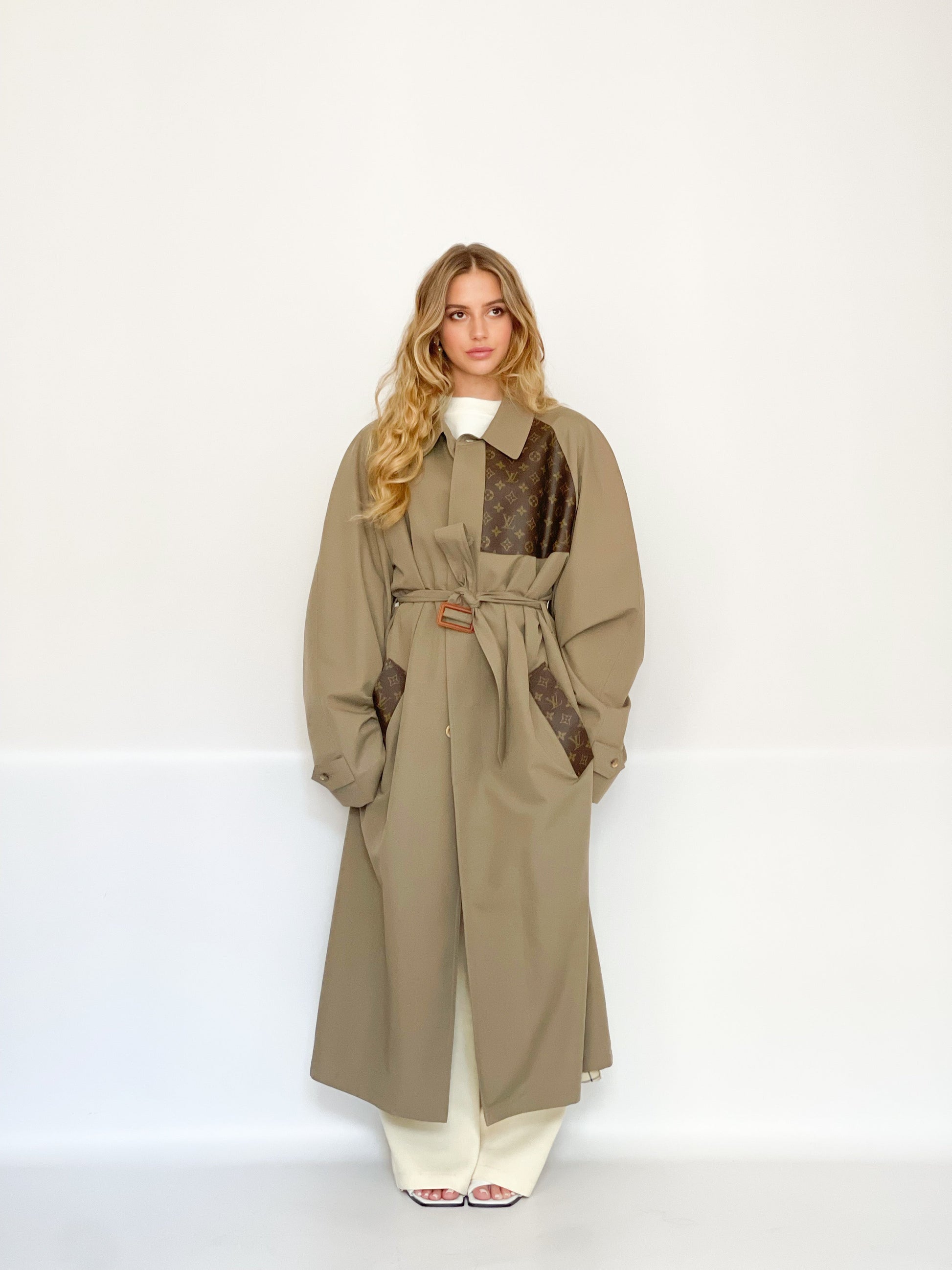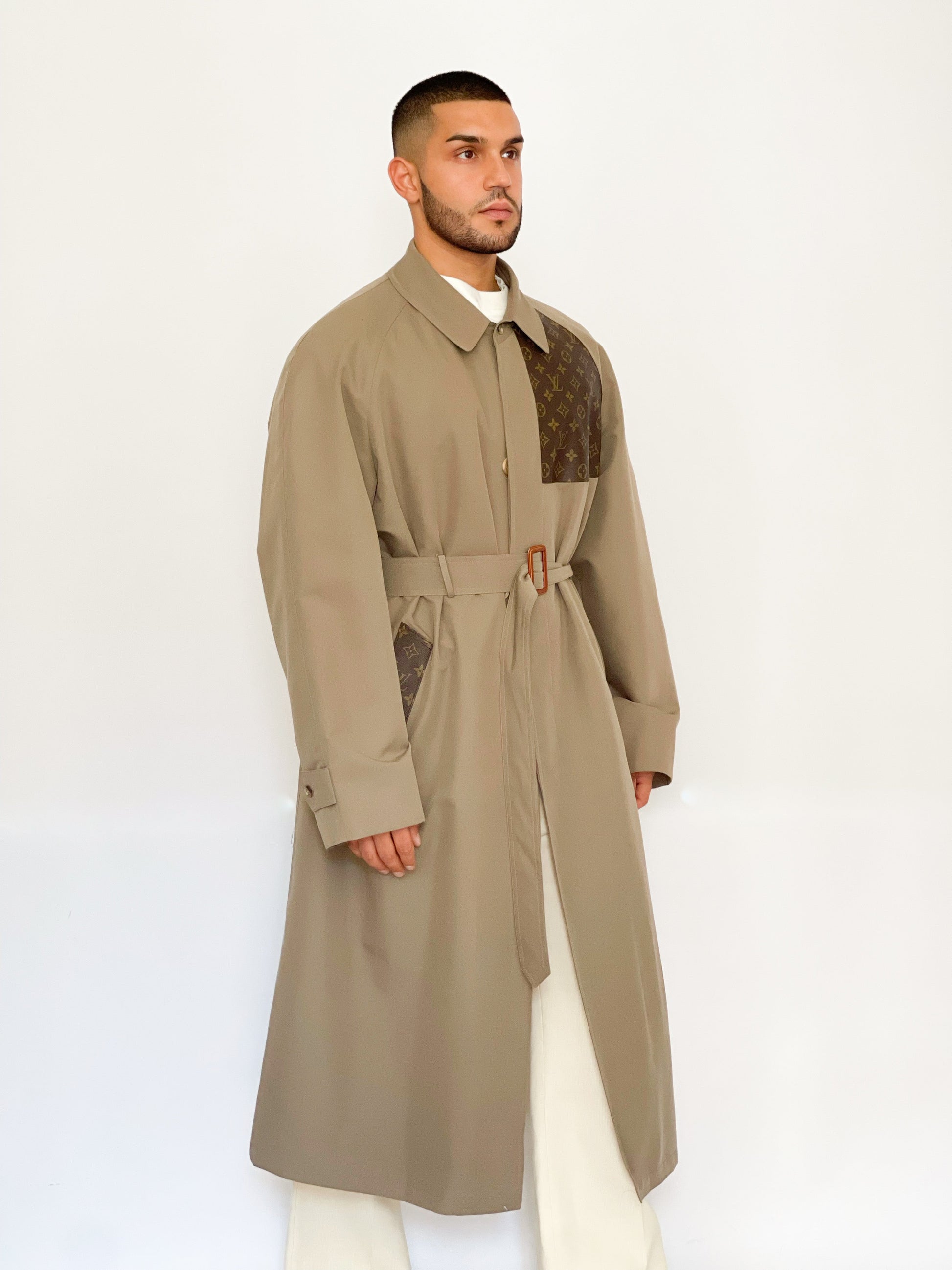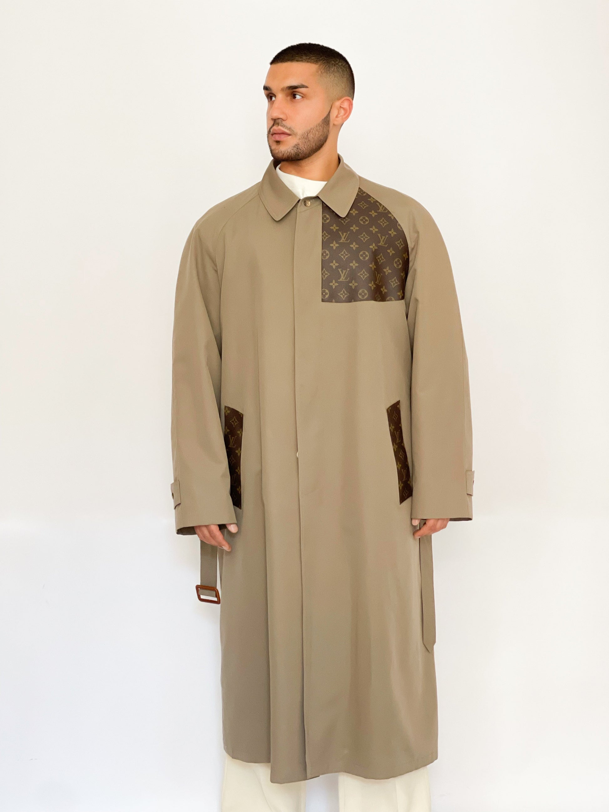 Trench upcyclé avec empiècement de toile d'une valise ou de châle